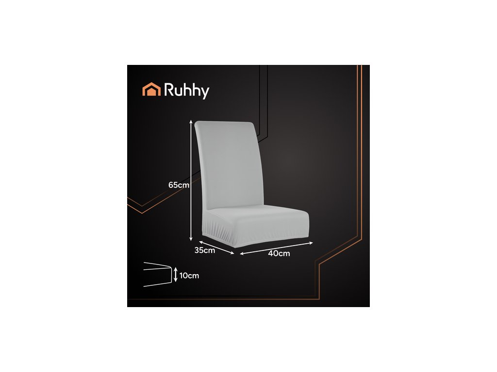 Tento potah RUHHY je vyroben z vysoce kvalitního, měkkého polyesteru a elastického spandexu. Spojuje v sobě eleganci, odolnost a funkčnost. Měkká, sametová látka krásně splývá s křeslem, dodává mu útulný a stylový vzhled a zároveň ho chrání před nečistotami a poškozením . Šedá barva se bez problémů hodí k různým interiérovým designům a univerzální velikost... 65x40x35 cm pasuje na většinu standardních židlí dostupných na trhu .