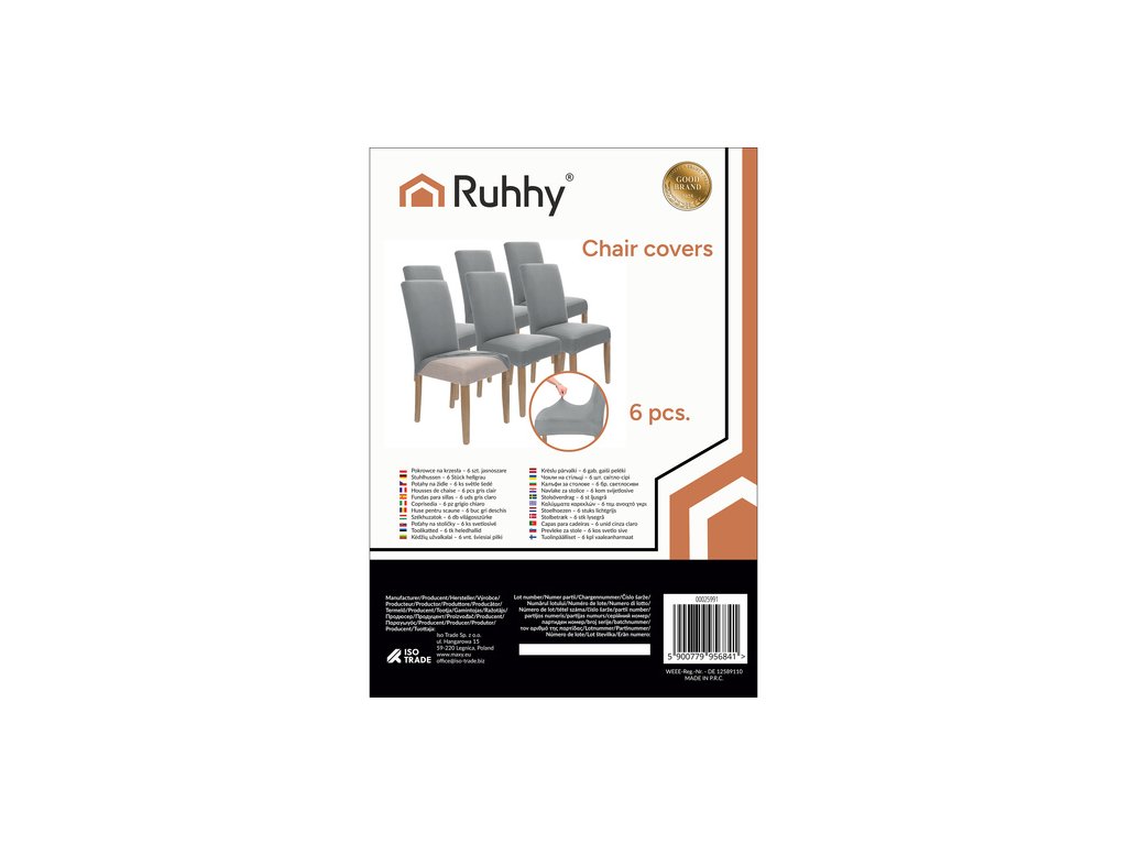 Potahy na židle - 6 ks. světle šedé Ruhhy 25991